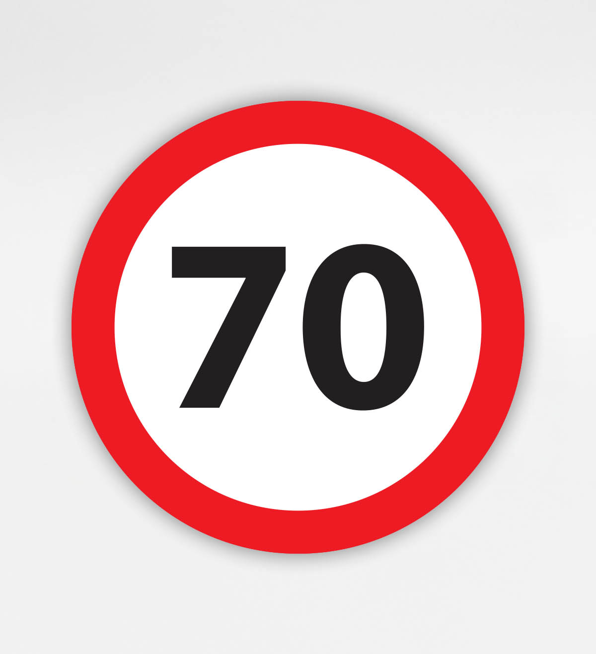 Prometni znak 70 let je izdelan iz trdnega Forex materiala debeline 5 mm. Primeren je za zunanjo uporabo, saj je odporen na vse vremenske pogoje (dež, sneg, sonce in vlaga), hkrati pa tudi za notranjo uporabo.
